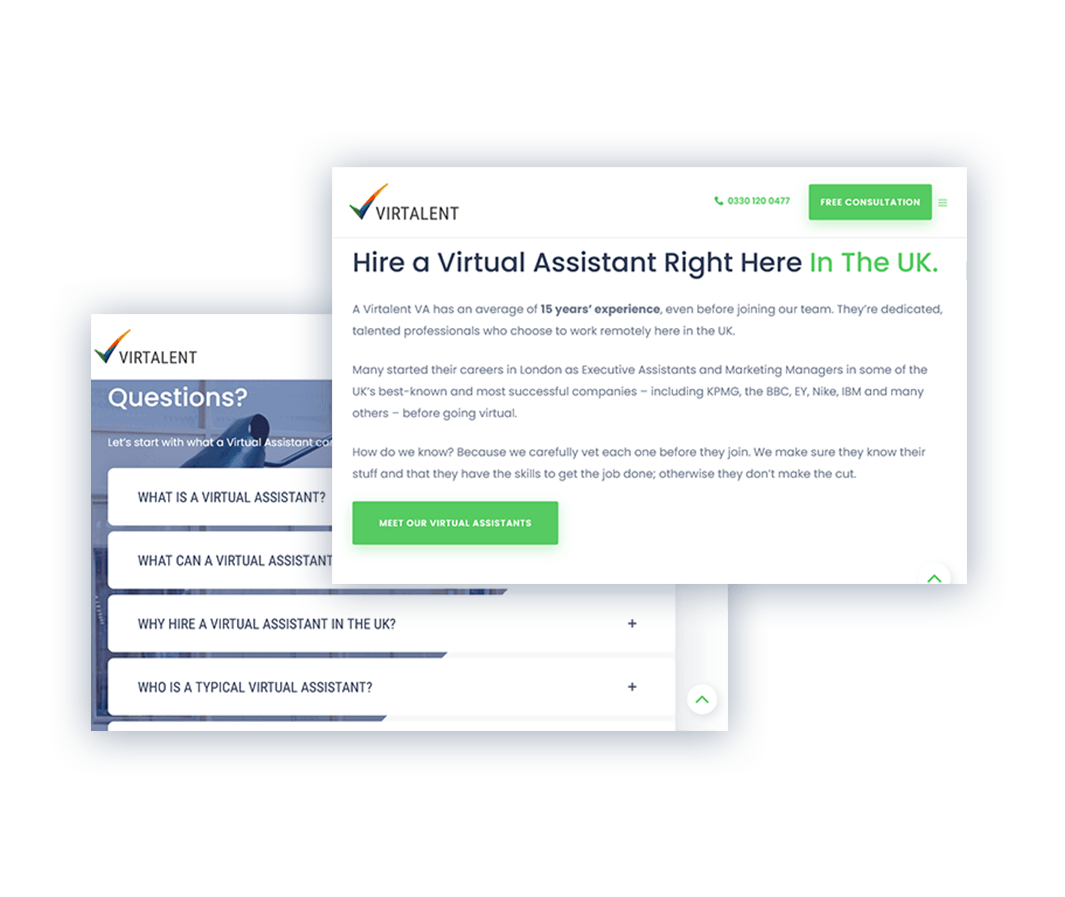 Virtalent.com website acts as an introduction for what services Virtalent can offer and how to go about working with them and as a way to promote and provide a know how of how best their services can be utilised.